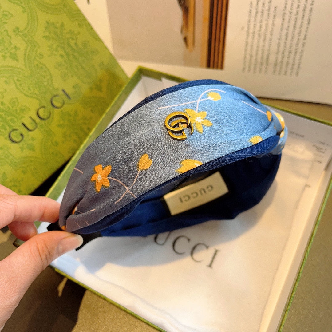 HAIRBAND WITH FLOWER PRINT IN CORNFLOWER BLUE SILK 398862