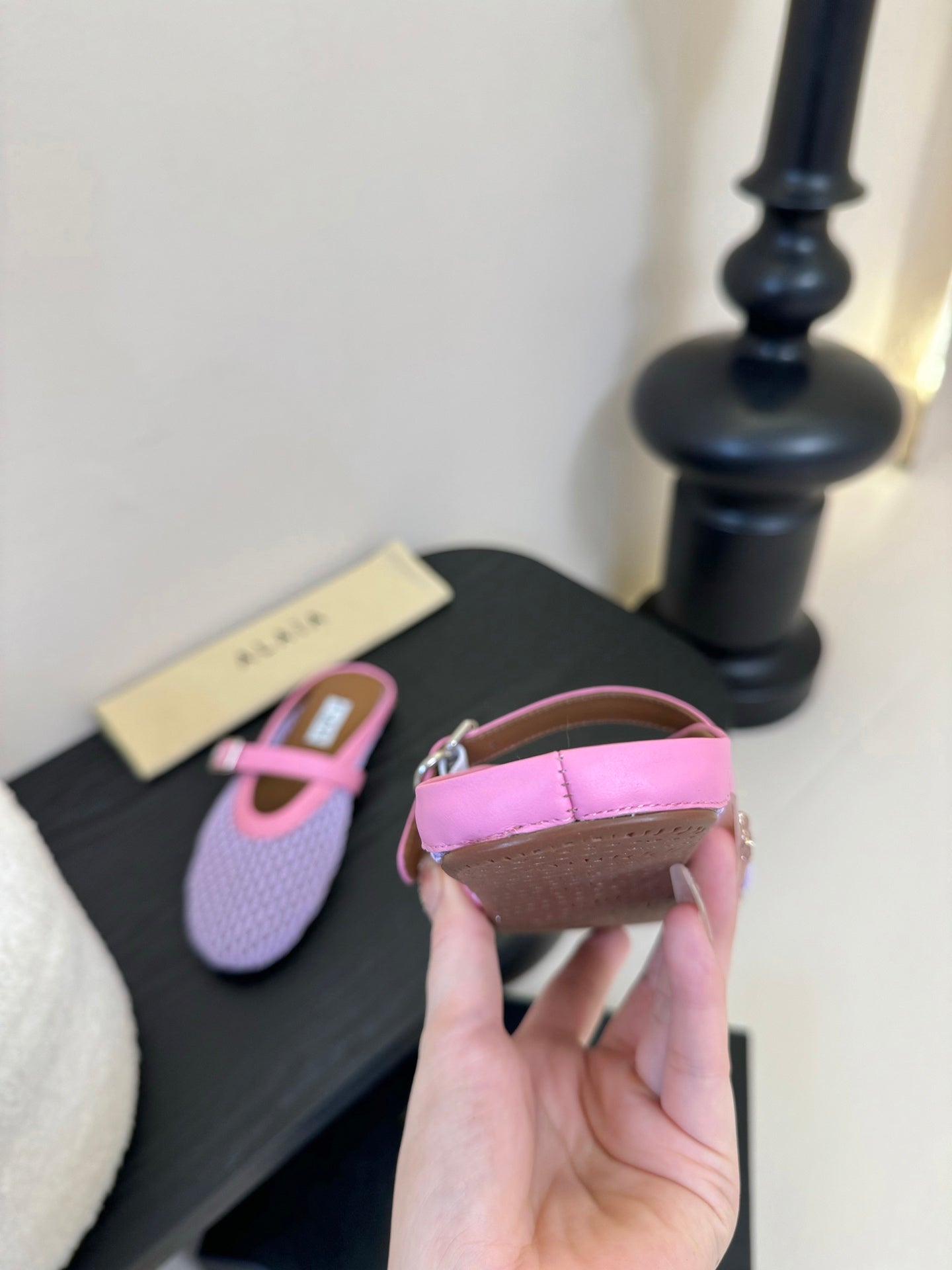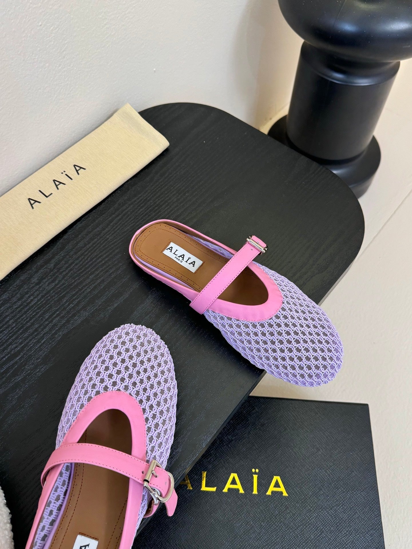 ALAIA FLAT MULES 25S IN PURPLE MIX PINK WOVEN MESH