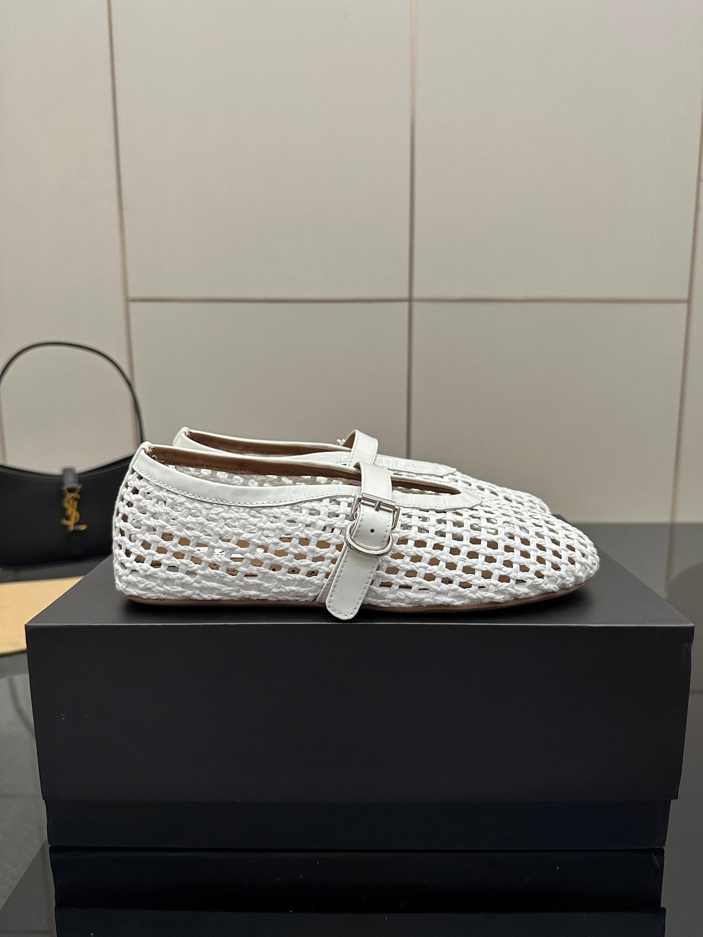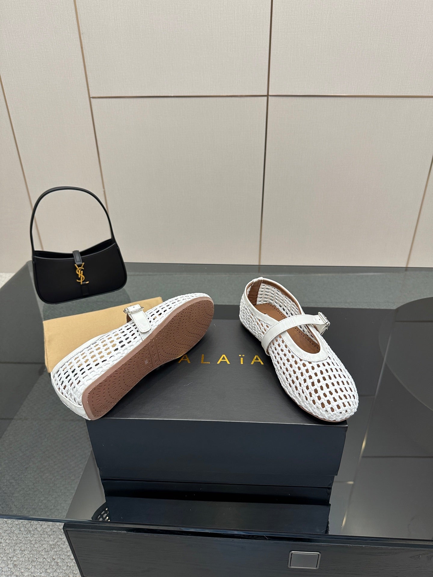 ALAIA MARY JANE FLAT 25S IN WHITE WOVEN MESH