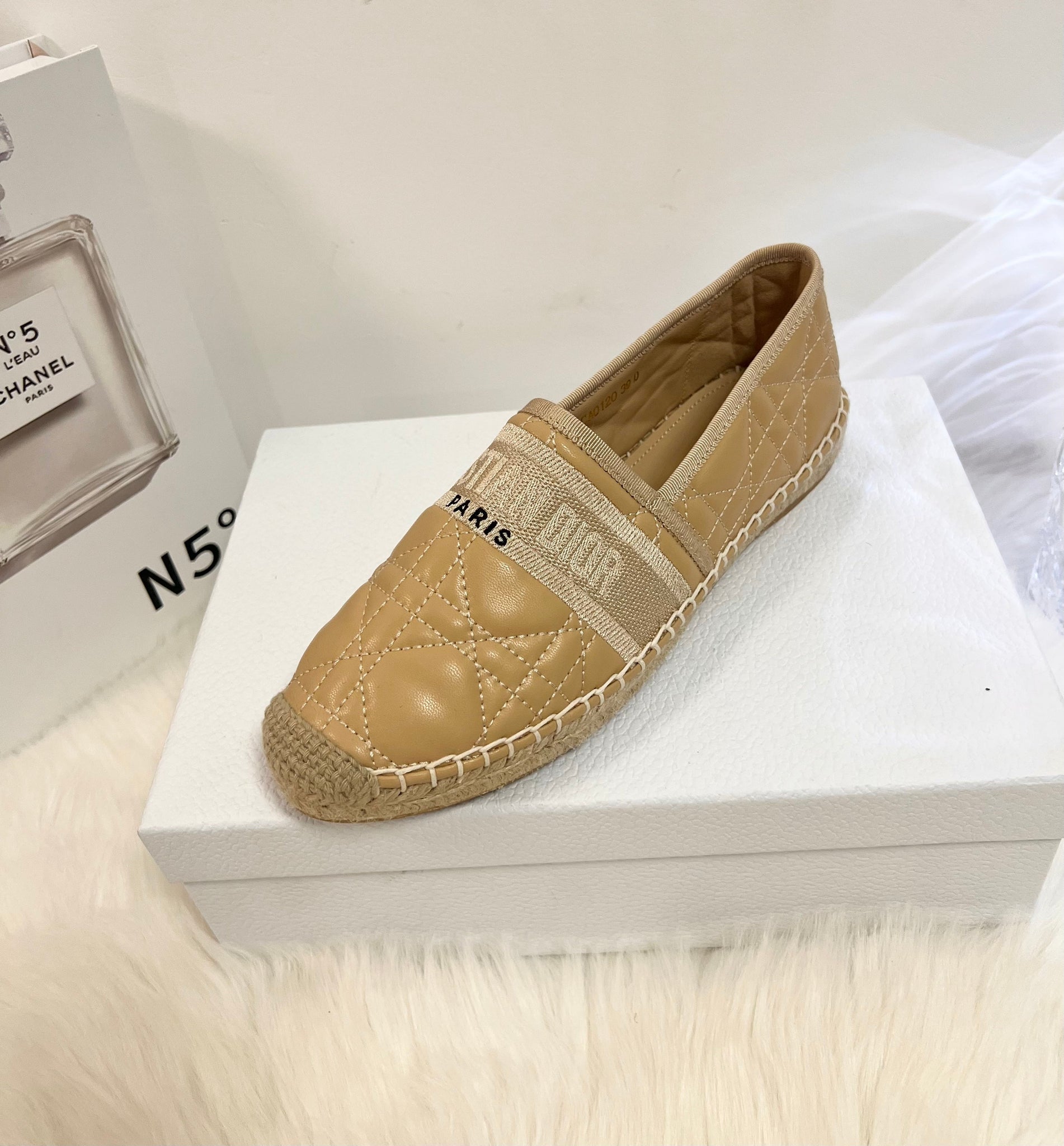 GRANVILLE ESPADRILLE CAMEL BEIGE QUILTED CANNAGE CALFSKIN