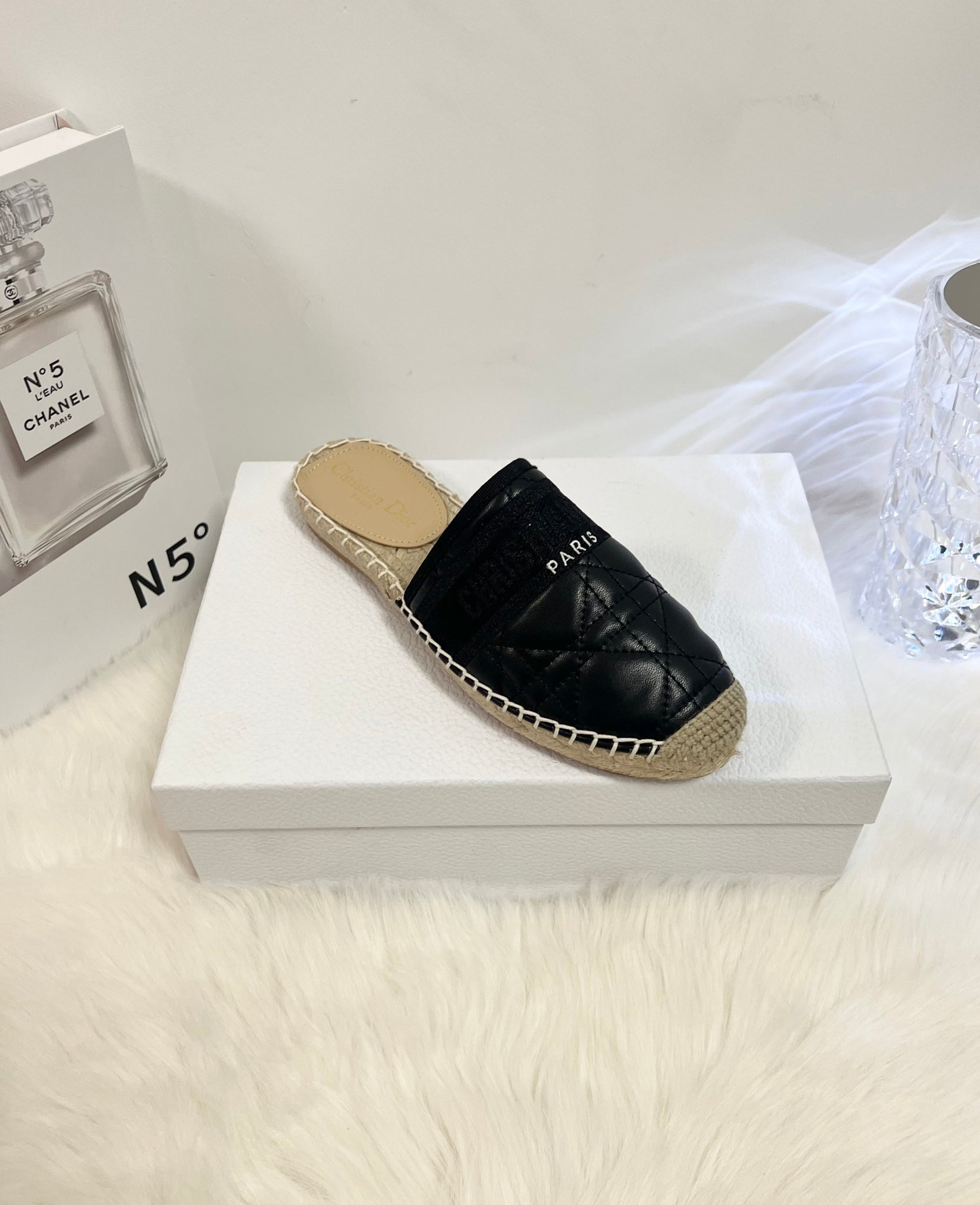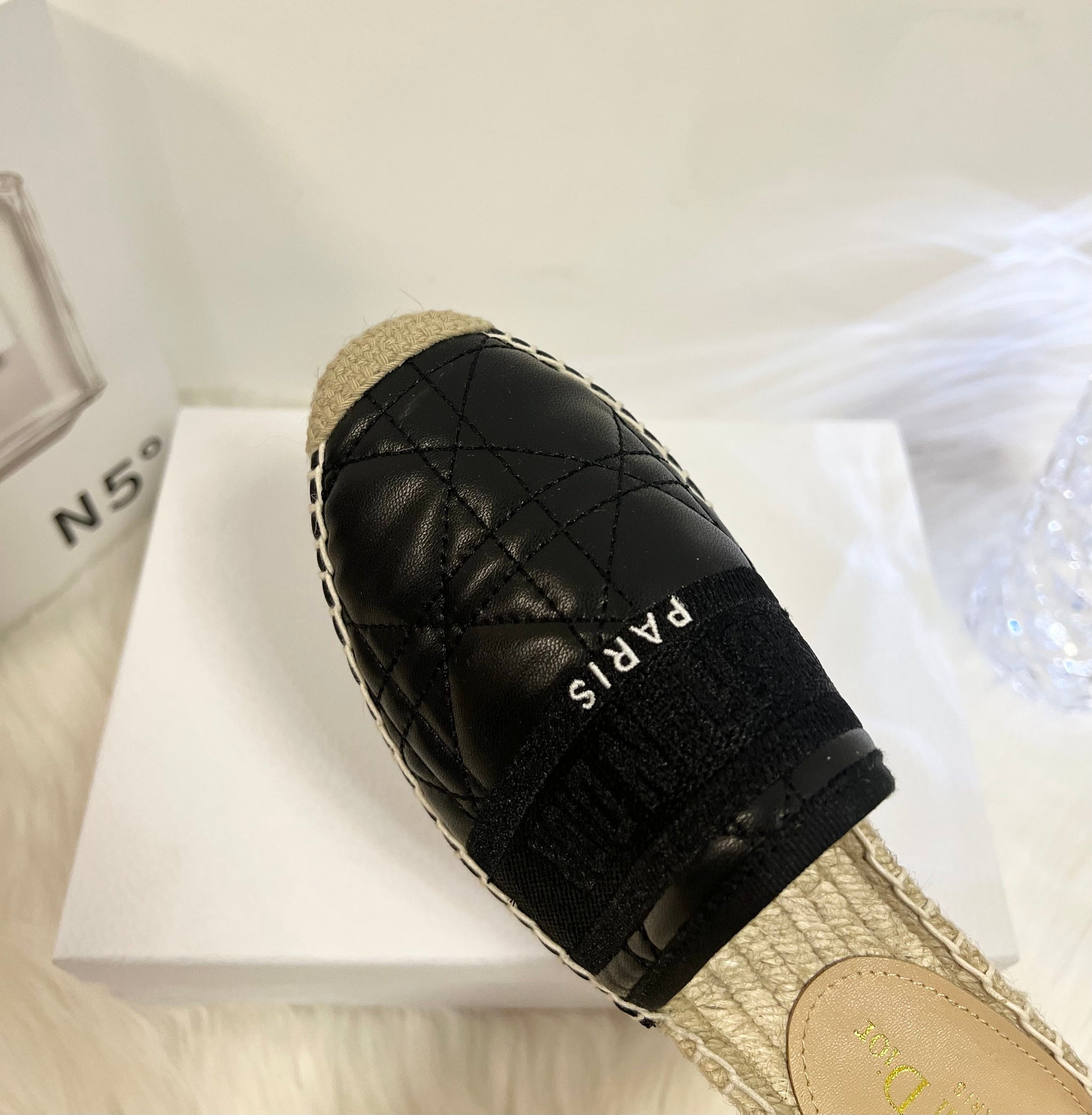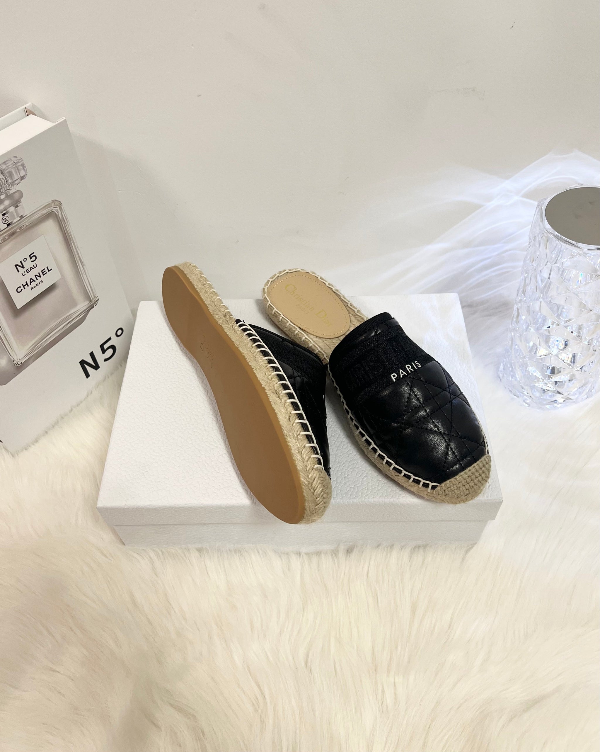 GRANVILLE ESPADRILLE MULE BLACK QUILTED CANNAGE CALFSKIN