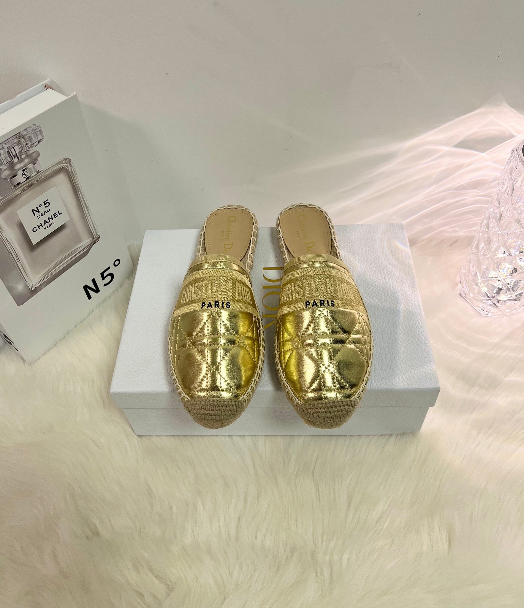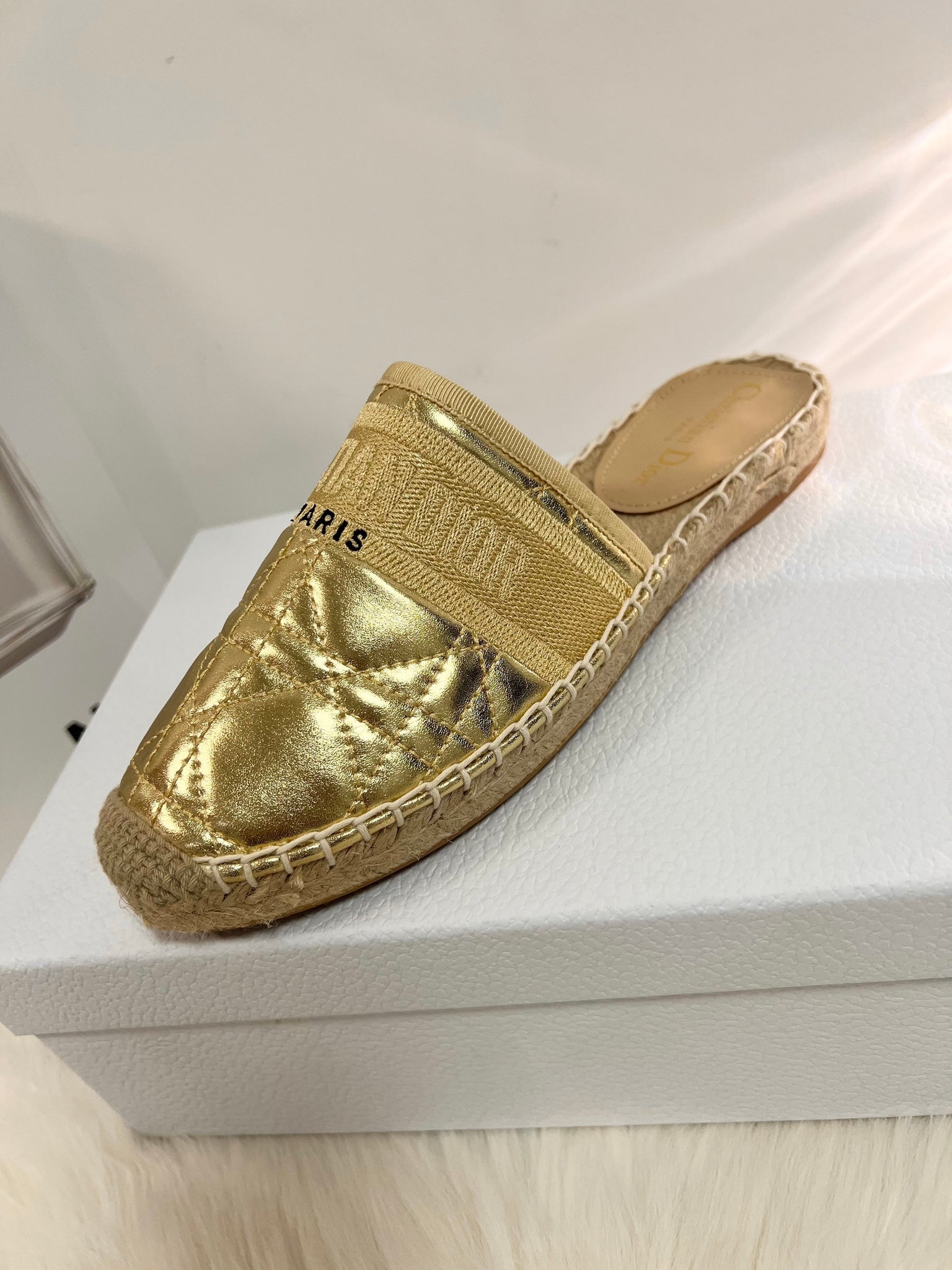 GRANVILLE ESPADRILLE MULE GOLD QUILTED CANNAGE CALFSKIN