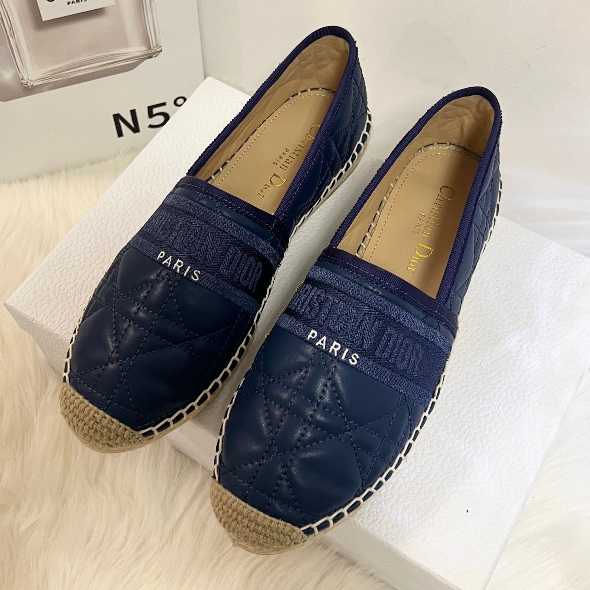GRANVILLE ESPADRILLE NAVY BLUE QUILTED CANNAGE CALFSKIN