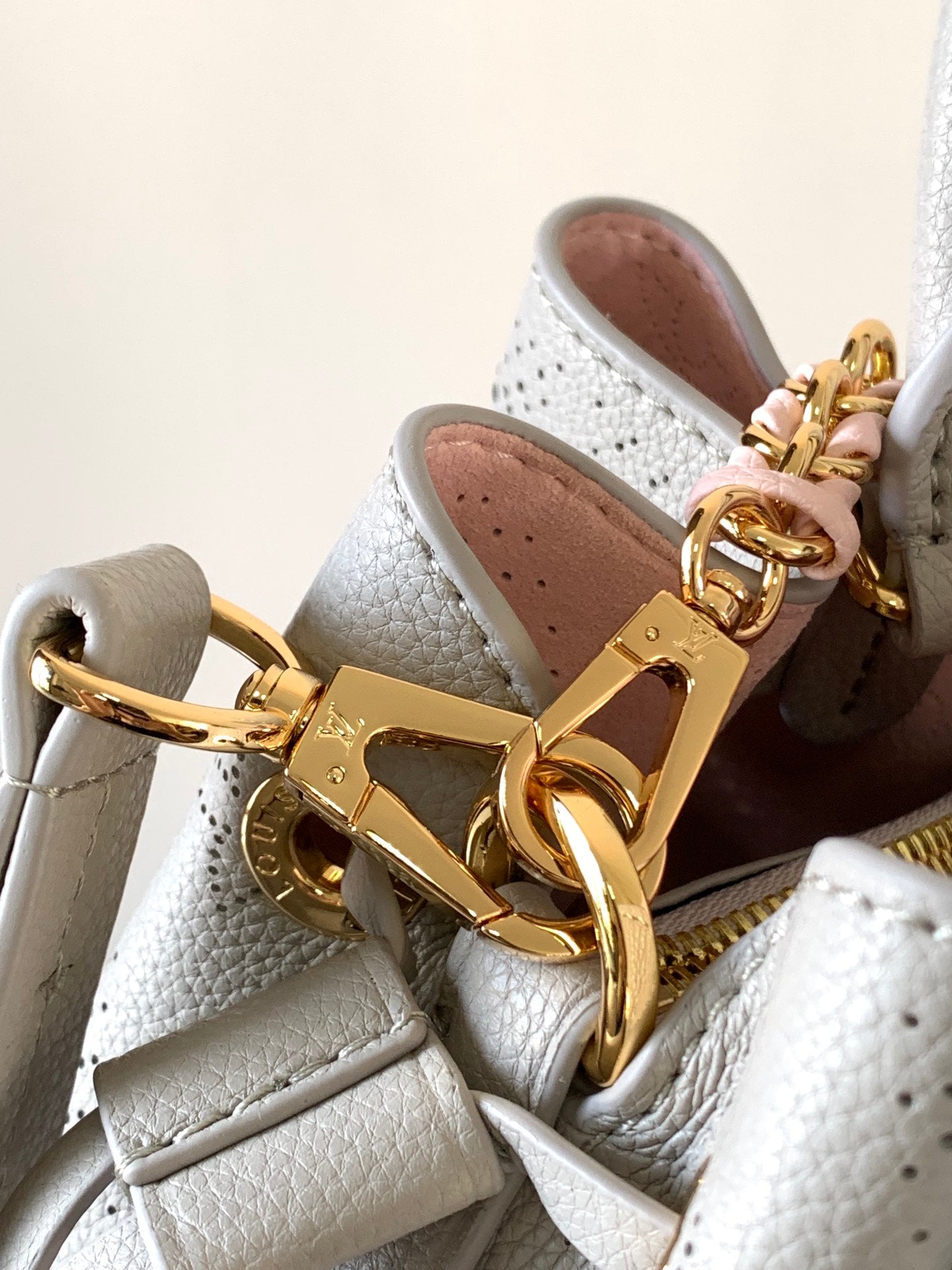 LV 25S BELLA TOTE BAG 32 IN PINK GREY PERFORATED MAHINA CALFSKIN