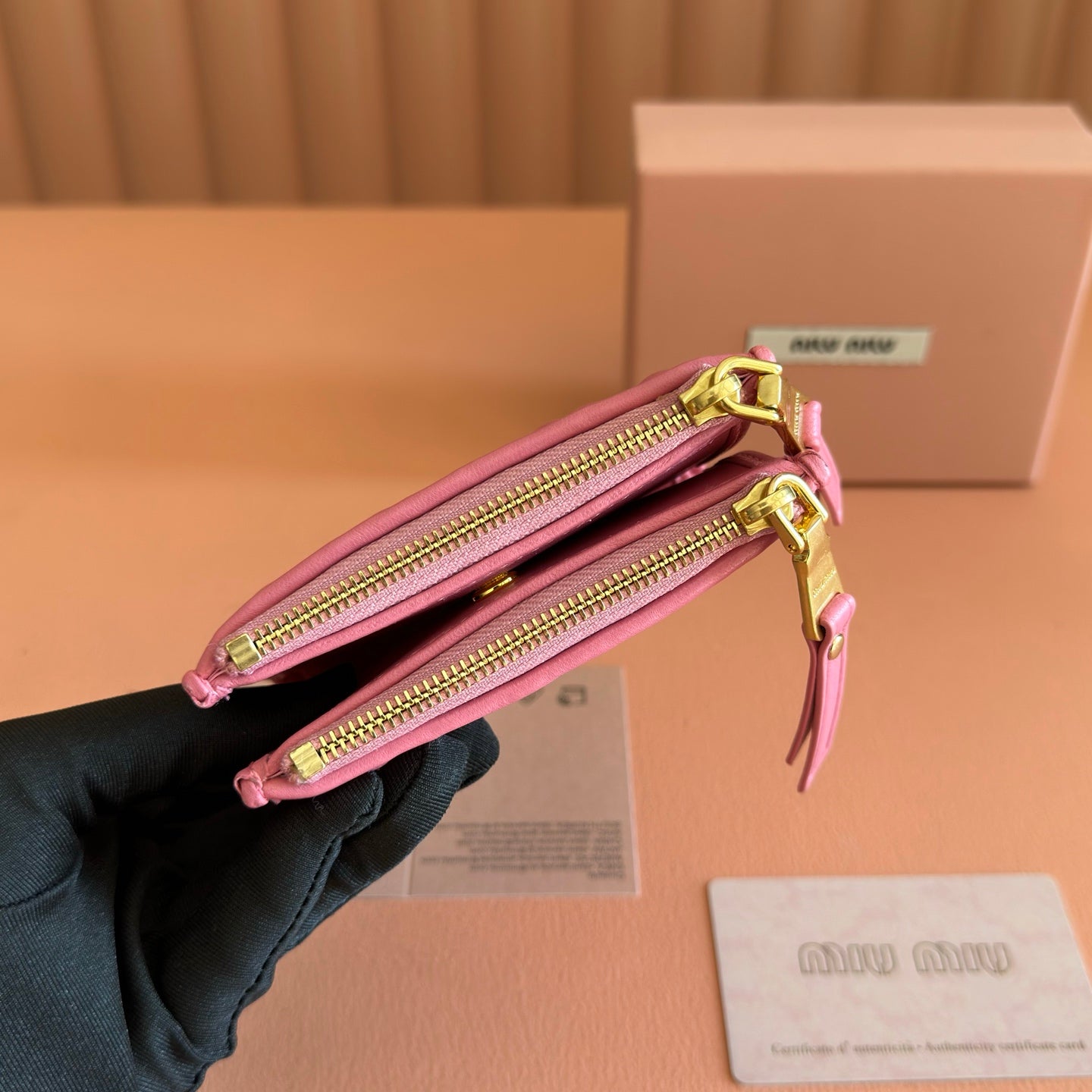MIUMIU 26S SMALL MATELASSE CARD HOLDER 11 IN PINK CALFSKIN GOLD HARDWARE