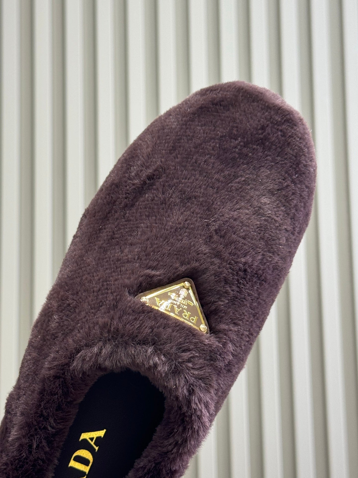 PRADA 25S CLOGS IN WINE RED SHEARLING
