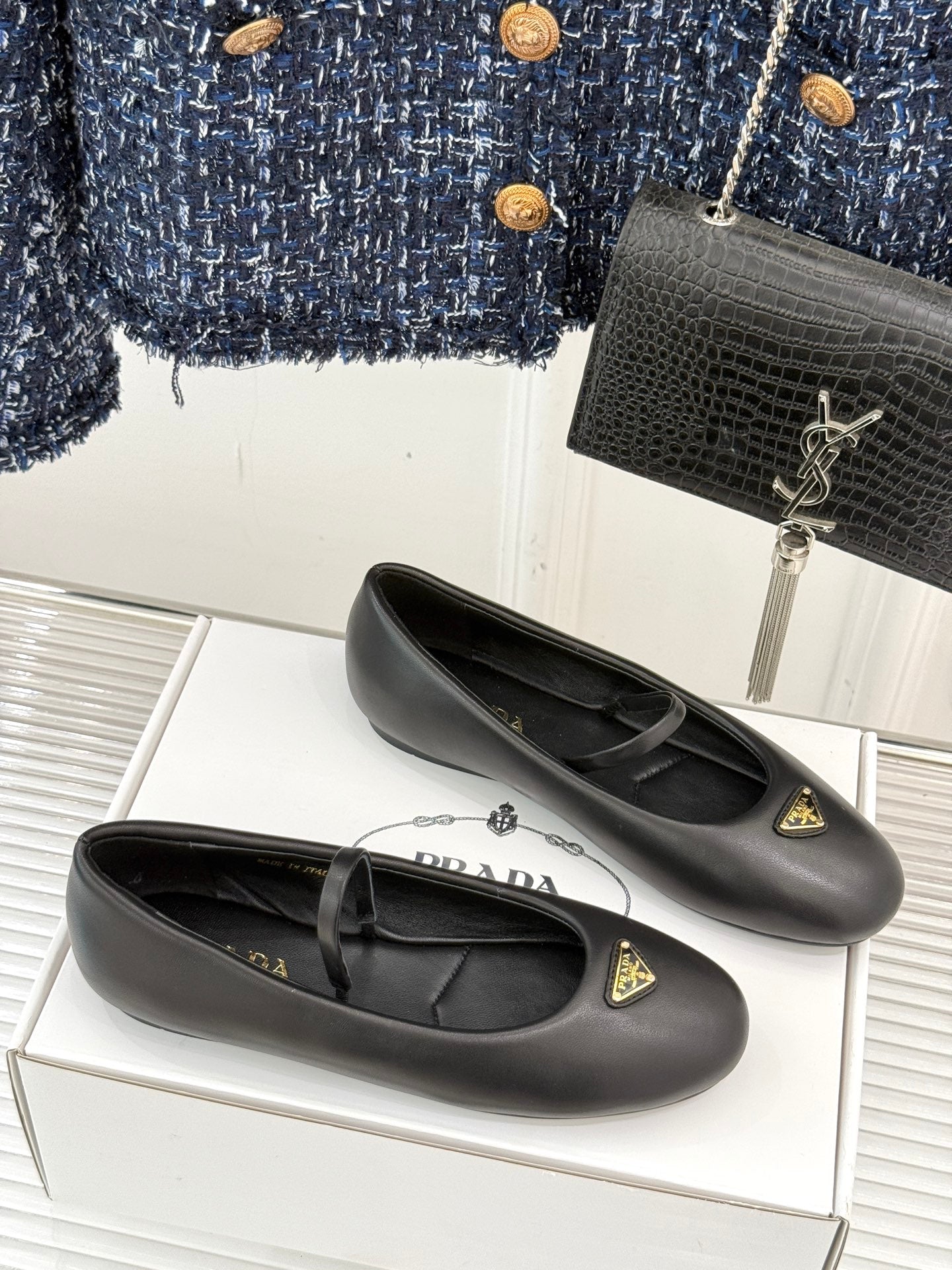 PRADA 25S SOFT PADDED BALLERINAS IN BLACK NAPPA LEATHER