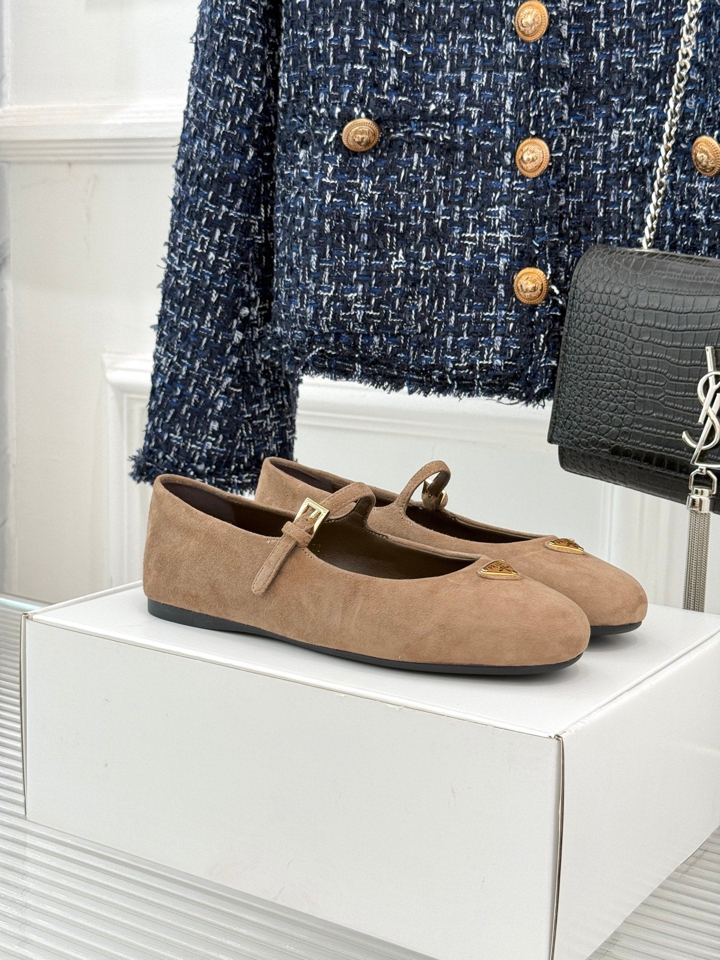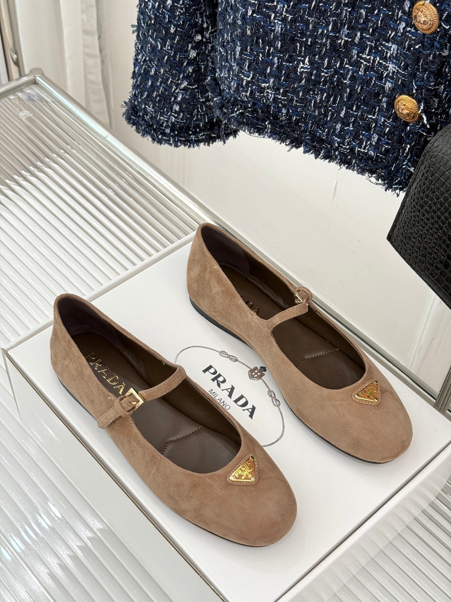 PRADA 25S SOFT PADDED BALLERINAS IN BROWN SUEDE