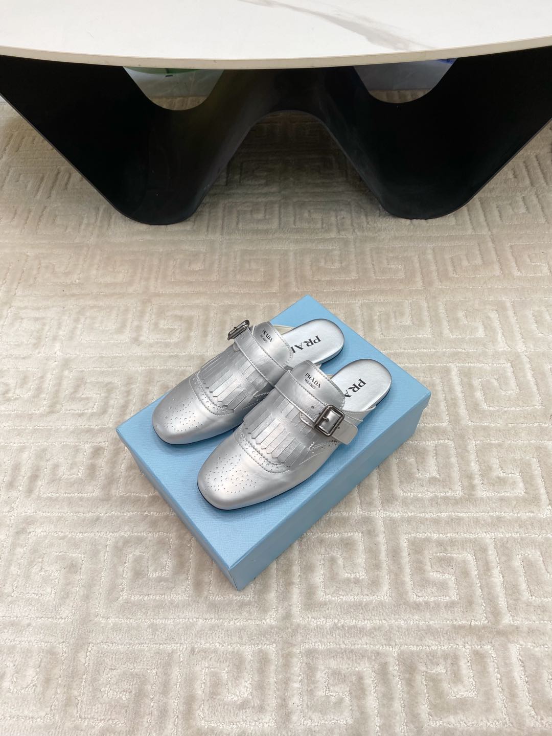 TASSEL MULES IN SILVER METALLIC LAMBSKIN