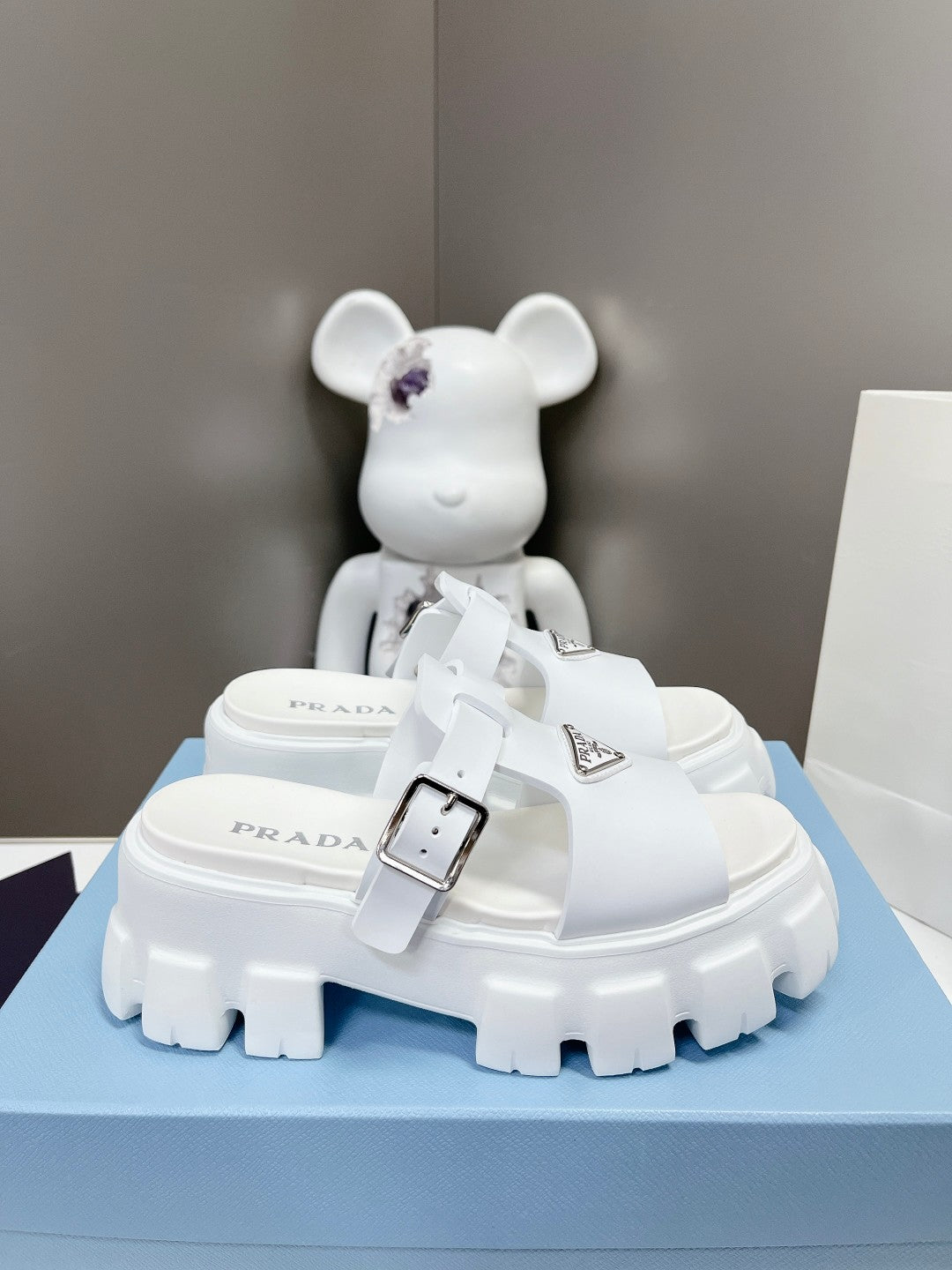 MONOLITH SLIPPER SANDALS IN WHITE RUBBER