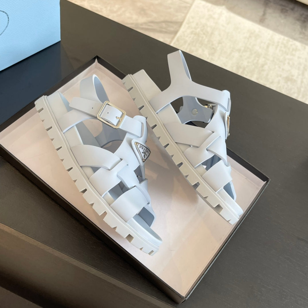 PRA CRISSCROSS RUBBER SANDALS WHITE CALFSKIN