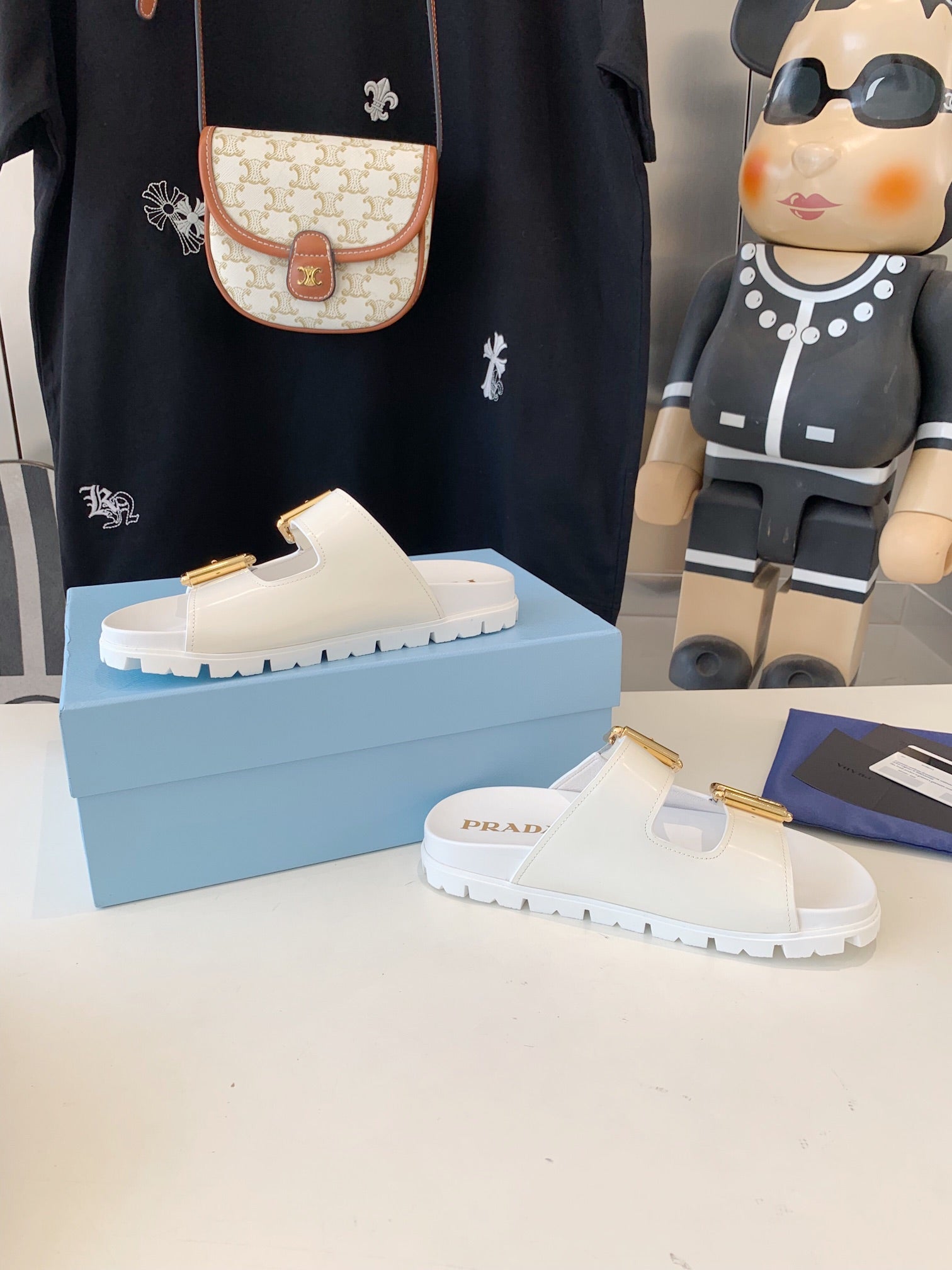 PRA STRAP SLIDES SANDALS GLOSSY WHITE CALFSKIN