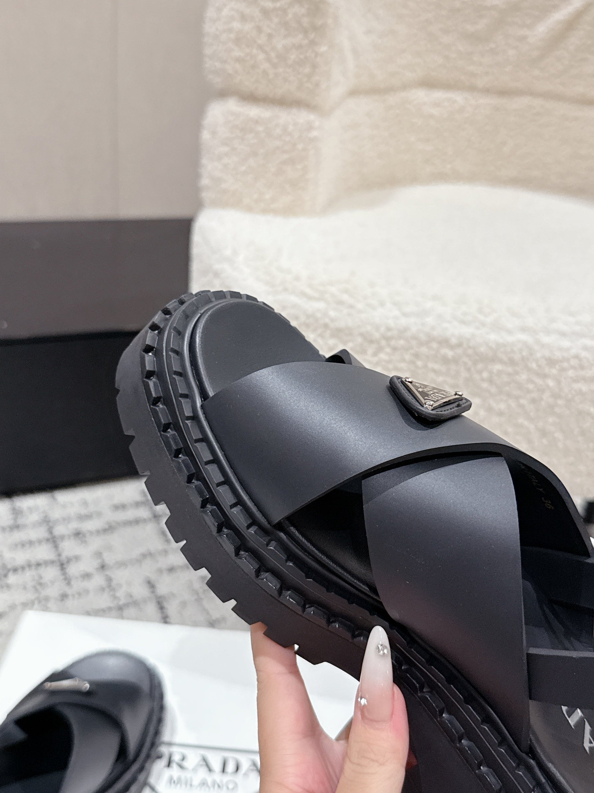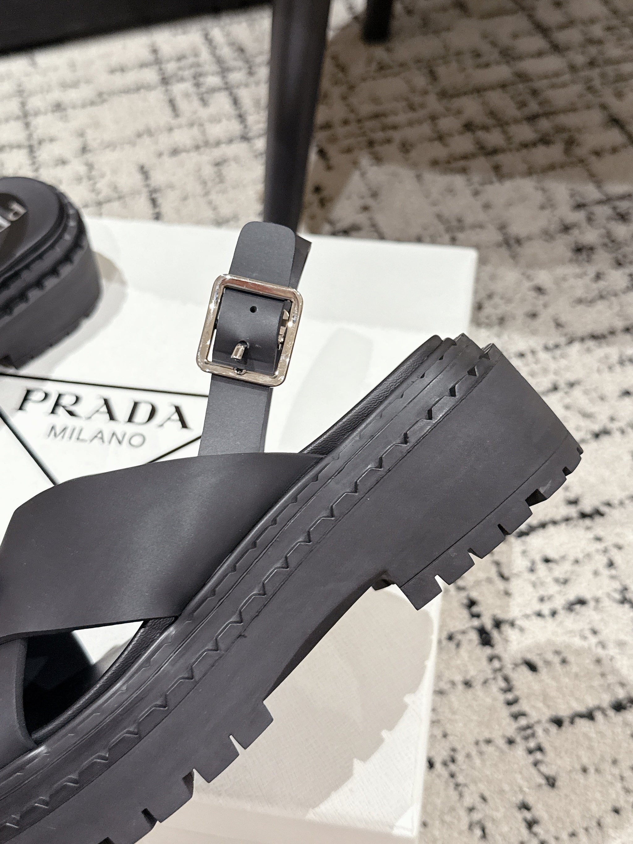 PRADA 25S CRISSCROSS SANDALS IN BLACK CALFSKIN LOGO