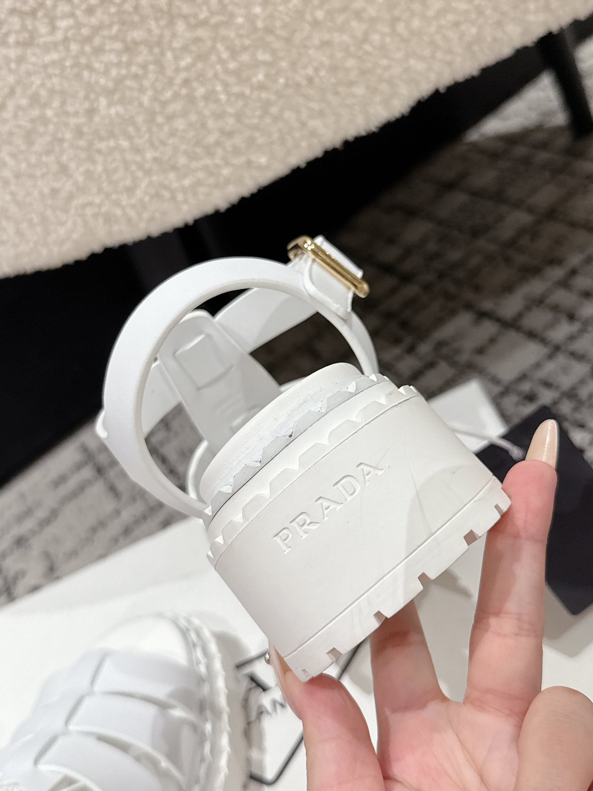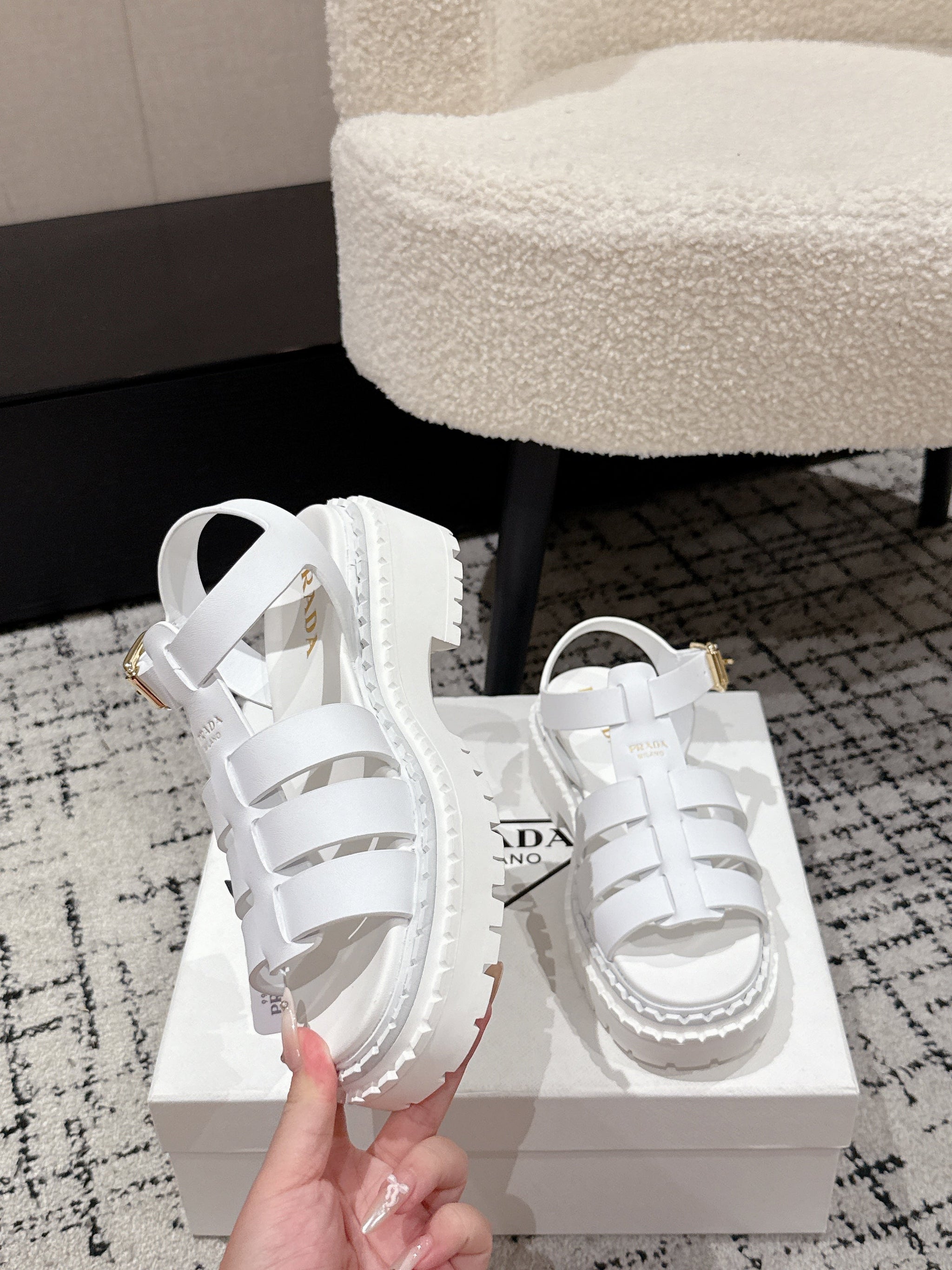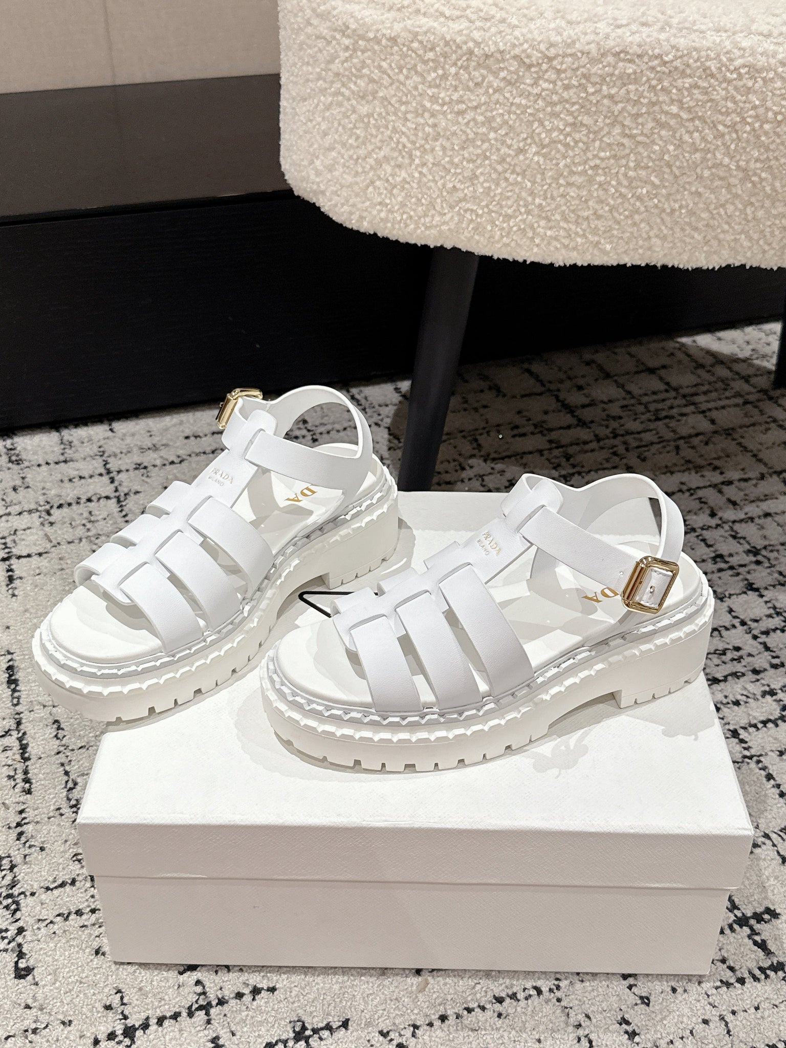 PRADA 25S FISHERMAN OPEN TOE SANDALS IN WHITE CALFSKIN
